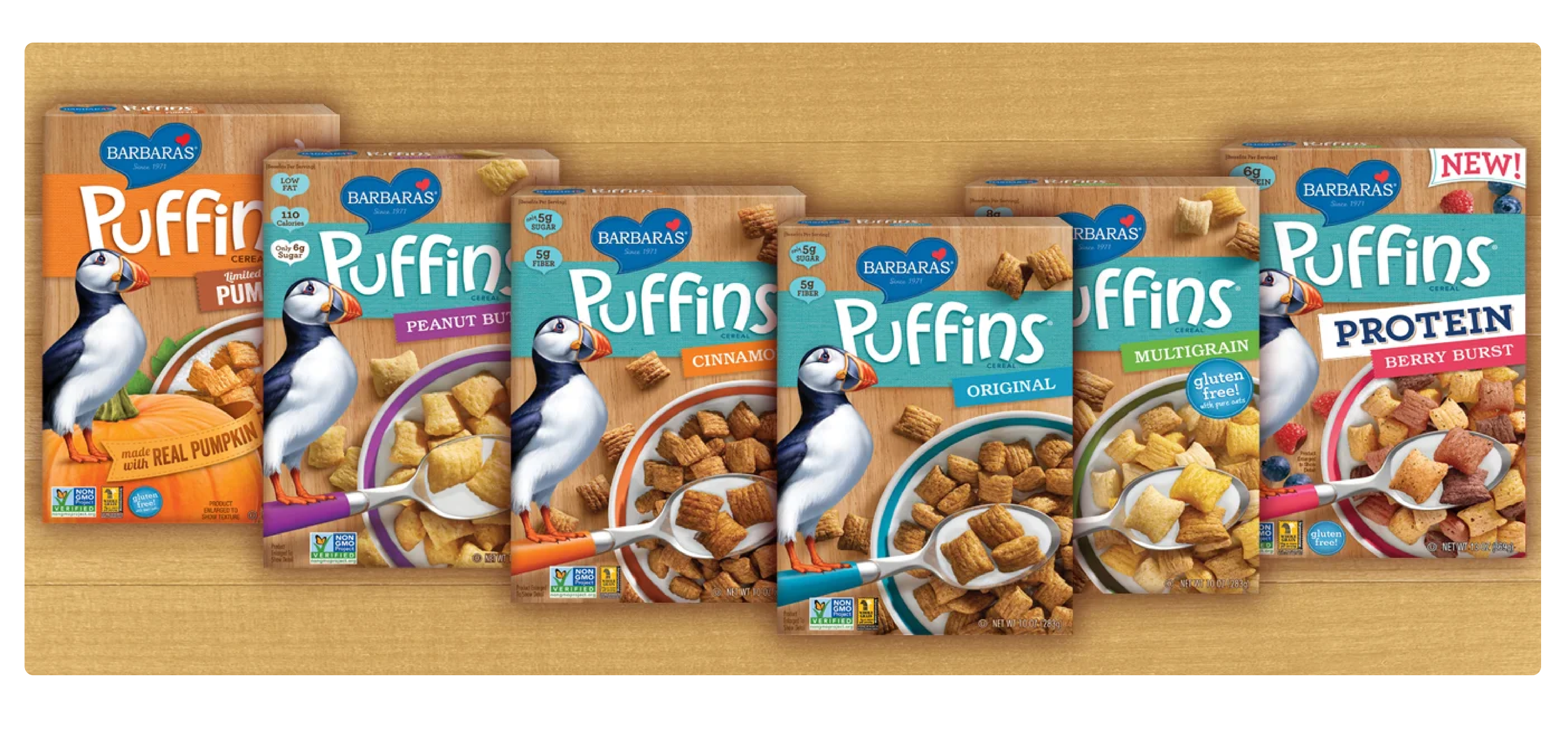 Barbara's Puffins cereal packaging rebrand — CPG packaging production and final artwork by print-ability™